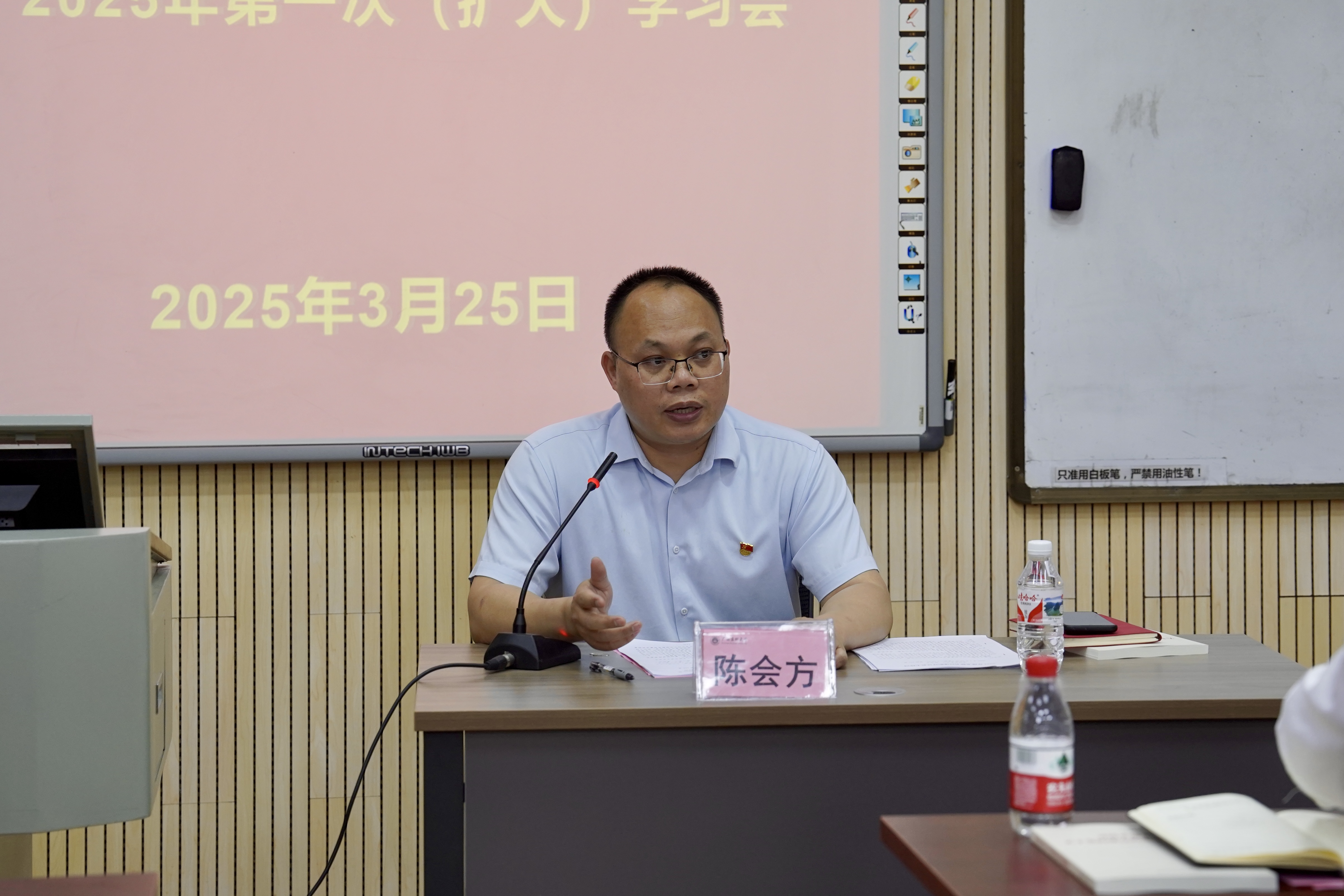 3月25日下午,伟德国际1946党委理论学习中心组2025年第一次(扩大)学习会在人文楼101室召开,会议主题是:深入学习贯彻全国两会精神,凝心聚力、真抓实干,以人工智能赋能医学教育高质量发展。公司全体党员参加会议。公司党委书记陈会方主持会议。